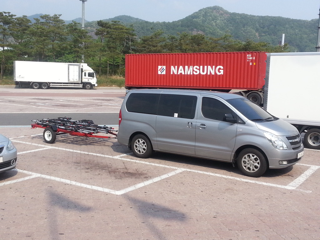 스타렉스에 트레일러를 달고 대전에서 대구까지 경부고속도로를 이용하여 왔는데 도로 달리는데 큰 무리는 없는 것 같습니다.
