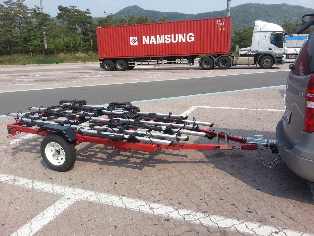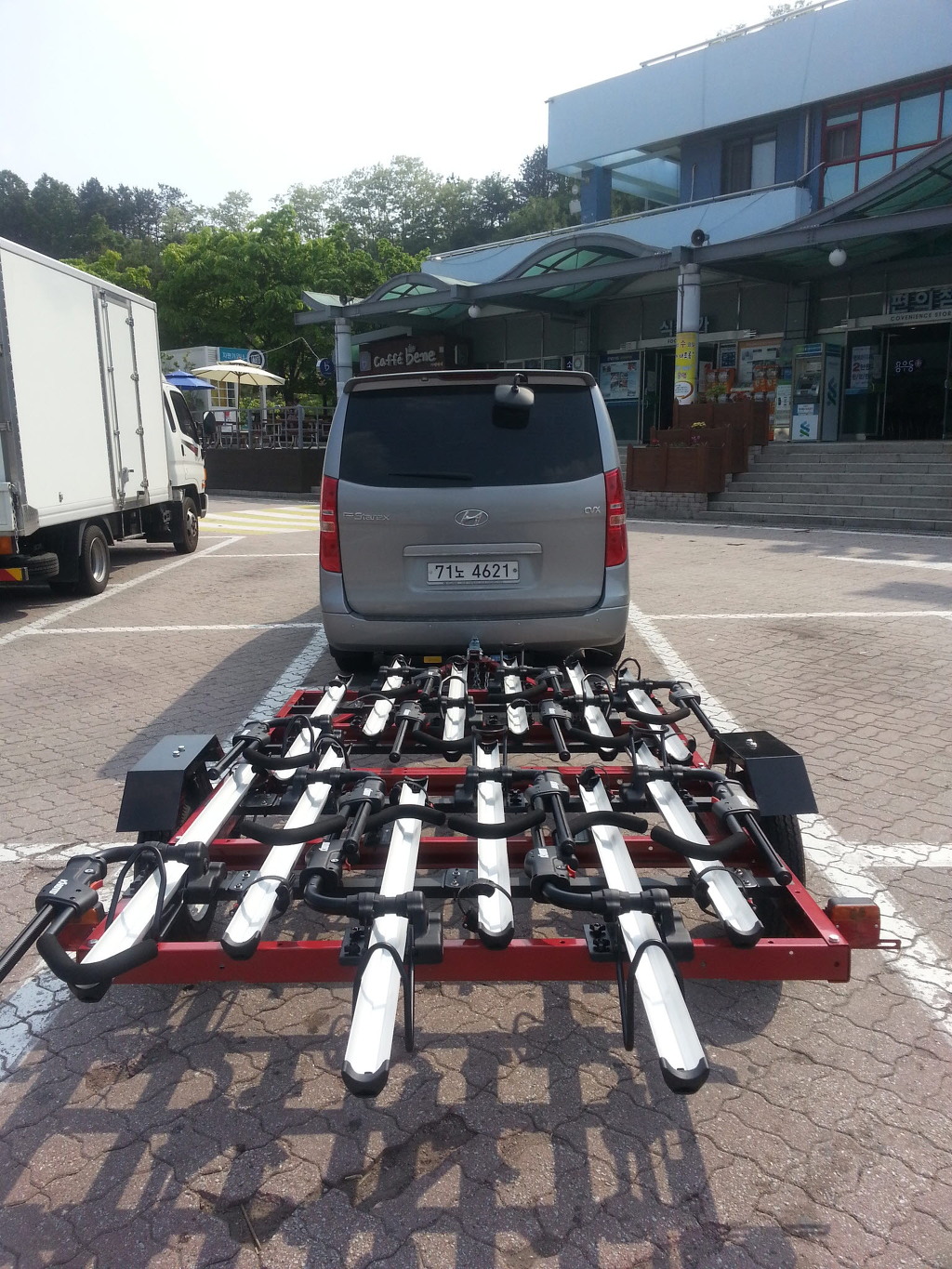 그래서 10여일 전 스타렉스 규모에 맞게 자전거 12대를 실을 수 있는 케리어를 부착한 차량용 트레일러를 주문했습니다.