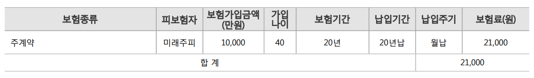 40세 남성 기준 - 사망보험 1억 : 21.000원