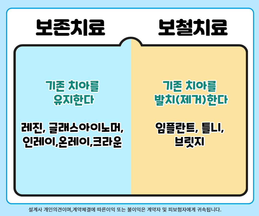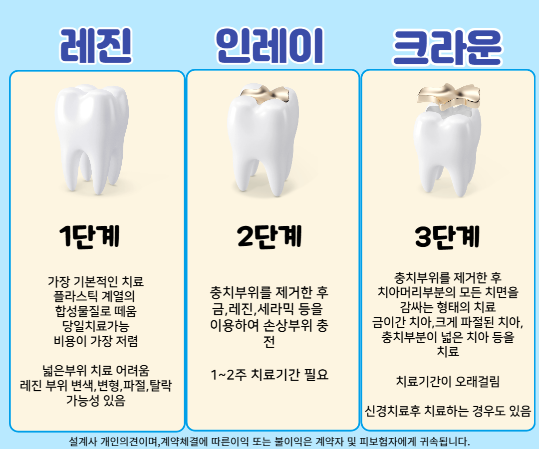 파절된 치아, 넓은 충치 부위의 치아 등을