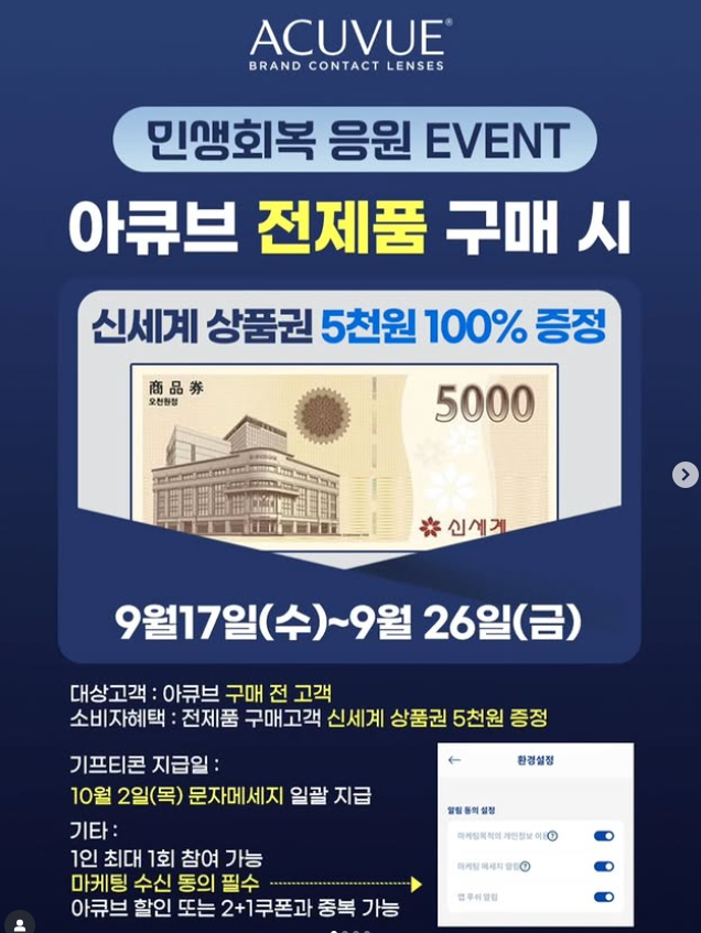 3️⃣ 혜택 : 아큐브 구매 시, 신세계 상품권 5천원 100% 증정