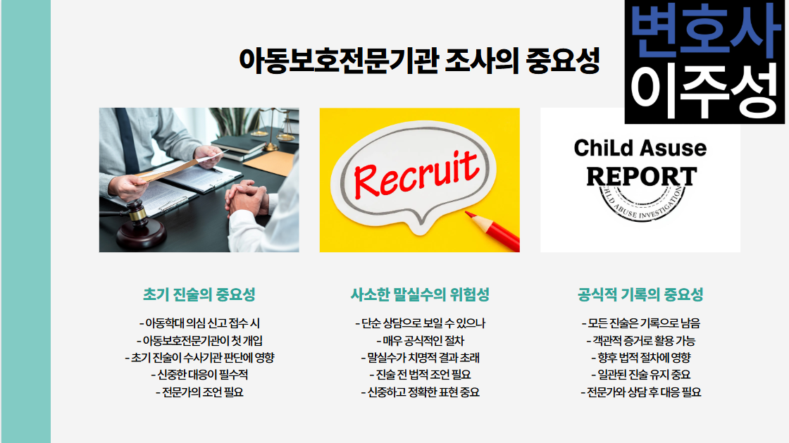 아동학대 의심 신고가 접수되면 가장 먼저 개입하는 기관은 아동보호전문기관입니다. 여기서의 초기 진술은 이후 수사기관 판단에 영향을 주기 때문에, 사소한 말실수조차 치명적인 결과를 불러올 수 있습니다. 단순한 상담 수준으로 보이더라도, 해당 과정은 매우 공식적이고 객관적인 기록으로 남게 됩니다.