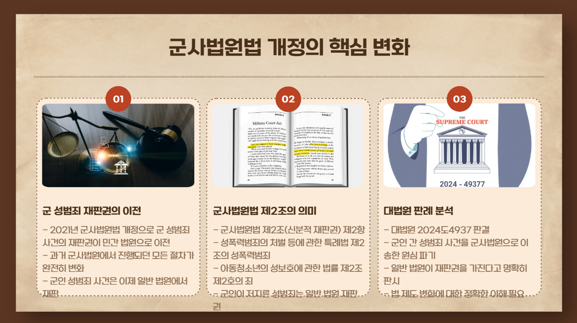1. 군 내 성범죄와 재판권의 변화: 이제는 민간 법원에서