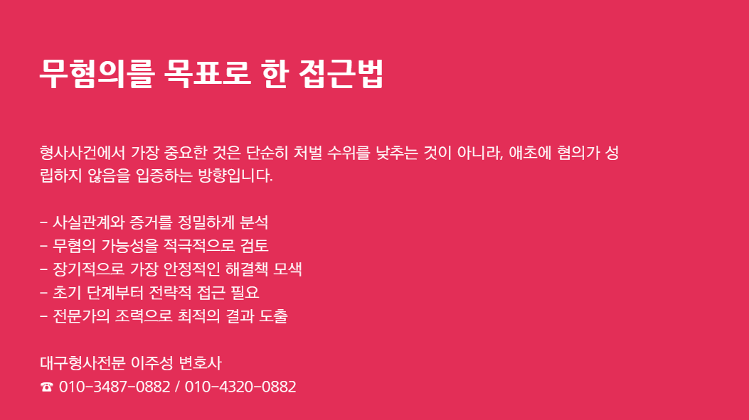 형사사건에서 중요한 것은 단순히 처벌 수위를 낮추는 것이 아니라, 애초에 혐의가 성립하지 않음을 입증하는 방향입니다. 사실관계와 증거를 정밀하게 분석해 무혐의 가능성을 검토하는 것이 장기적으로 가장 안정적인 해결책이 됩니다. 대구형사사건변호사 는 이러한 관점에서 사건을 바라보고 전략을 설계합니다.