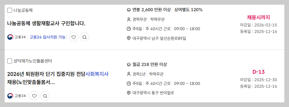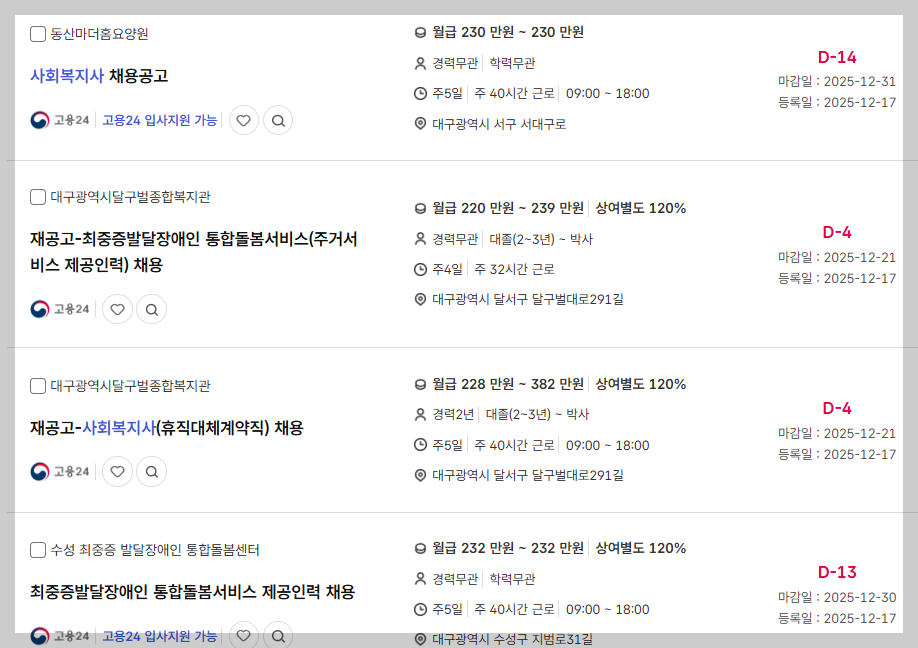사회복지사 채용 공고 일부를 소개해드릴게요!
