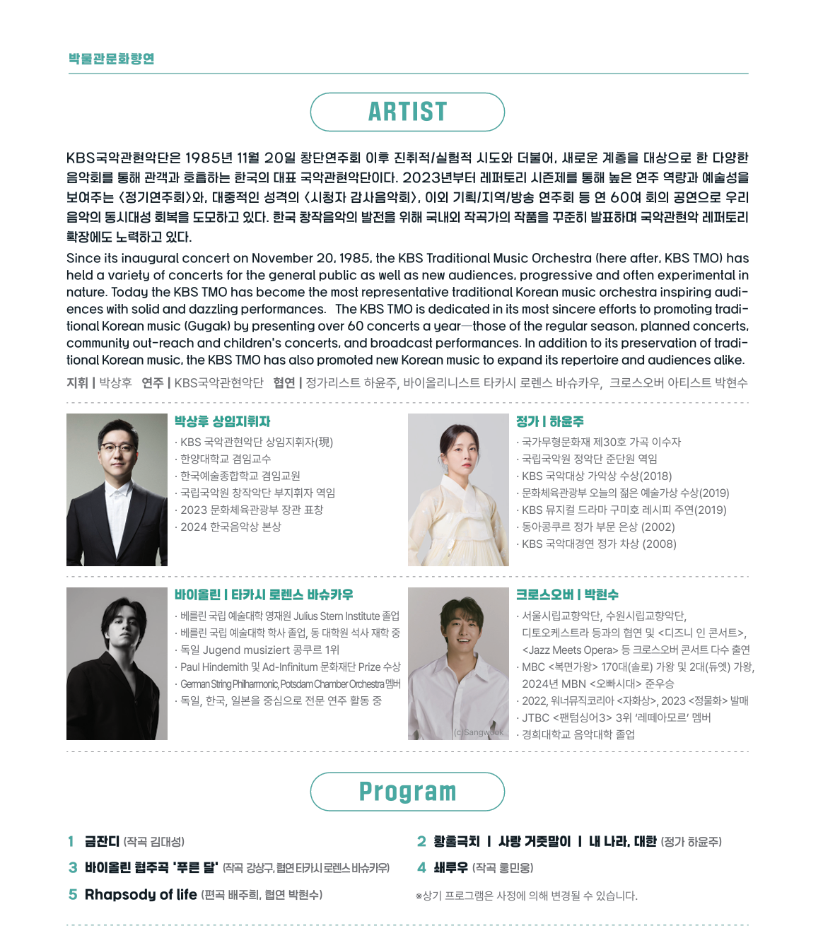KBS국악관현악단 - 국립중앙박물관 문화향연 작성자최영재|작성시간25.06.13|조회수57 목록 댓글 0 글자크기 작게가 글자크기 크게가 다음검색 현재 게시글 추가 기능 열기 북마크 공유하기 신고 센터로 신고 댓글 댓글 0 댓글쓰기 답글쓰기 댓글 리스트