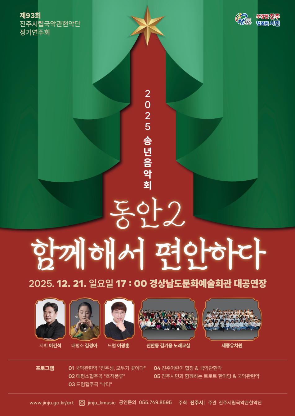진주시립 국악관현악단 - 송년음악회 작성자최영재|작성시간25.12.14|조회수43 목록 댓글 0 글자크기 작게가 글자크기 크게가 다음검색 현재 게시글 추가 기능 열기 북마크 공유하기 신고 센터로 신고 댓글 댓글 0 댓글쓰기 답글쓰기 댓글 리스트