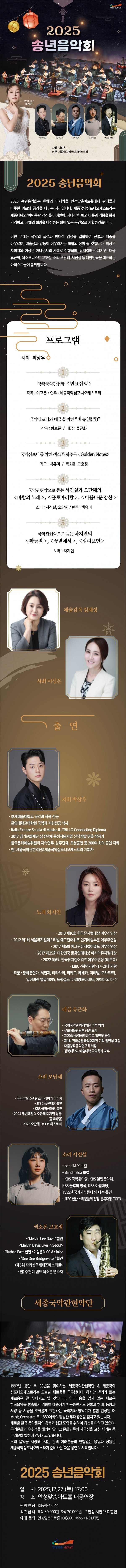 세종국악관현악단 <2025 송년음악회> 작성자최영재|작성시간25.12.18|조회수45 목록 댓글 0 글자크기 작게가 글자크기 크게가 다음검색 현재 게시글 추가 기능 열기 북마크 공유하기 신고 센터로 신고 댓글 댓글 0 댓글쓰기 답글쓰기 댓글 리스트