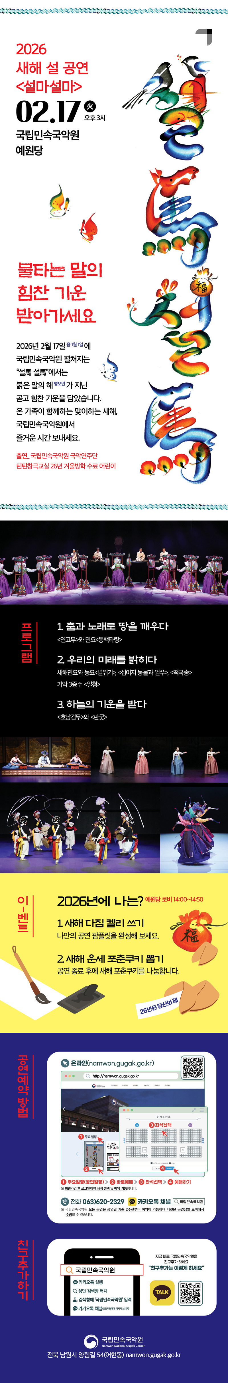 국립민속국악원 - 설 공연 작성자최영재|작성시간26.02.10|조회수16 목록 댓글 0 글자크기 작게가 글자크기 크게가 관람료 = 무료 다음검색 현재 게시글 추가 기능 열기 북마크 공유하기 신고 센터로 신고 댓글 댓글 0 댓글쓰기 답글쓰기 댓글 리스트