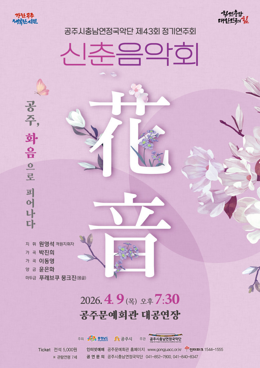 공주시 충남연정국악단 - 신춘음악회 작성자최영재|작성시간26.04.04|조회수14 목록 댓글 0 글자크기 작게가 글자크기 크게가 다음검색 현재 게시글 추가 기능 열기 북마크 공유하기 신고 센터로 신고 댓글 댓글 0 댓글쓰기 답글쓰기 댓글 리스트