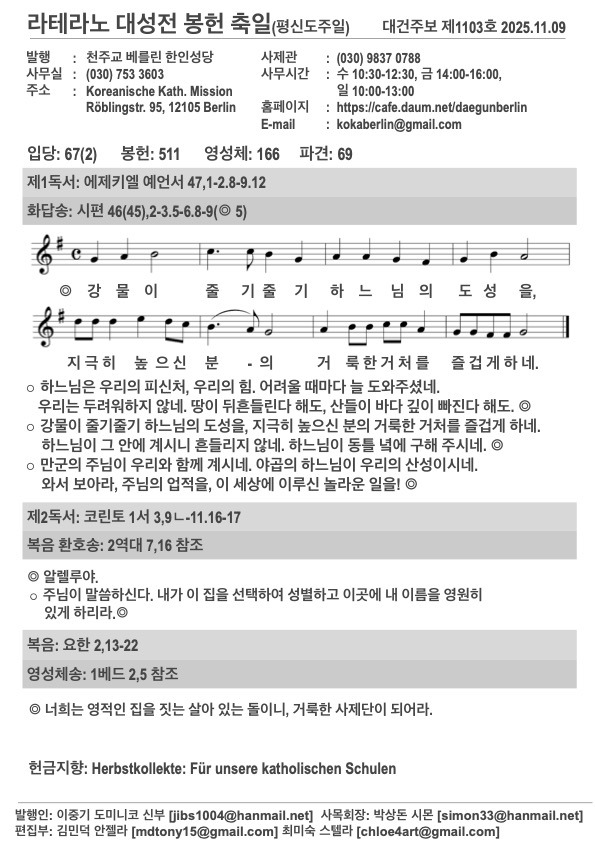 2025년 라테라노 대성전 봉헌 축일 주보입니다. 작성자김민덕 안젤라|작성시간25.11.09|조회수104 목록 댓글 0 글자크기 작게가 글자크기 크게가 20251109.pdf615.89KB 첨부파일첨부된 파일이 5개 있습니다. jpg 파일 202511091.jpg 다운로드 jpg 파일 202511092.jpg 다운로드 jpg 파일 202511094.jpg 다운로드 jpg 파일 202511093.jpg 다운로드 pdf 파일 20251109.pdf 다운로드 다음검색 현재 게시글 추가 기능 열기 북마크 공유하기 신고 센터로 신고 댓글 댓글 0 댓글쓰기 답글쓰기 댓글 리스트