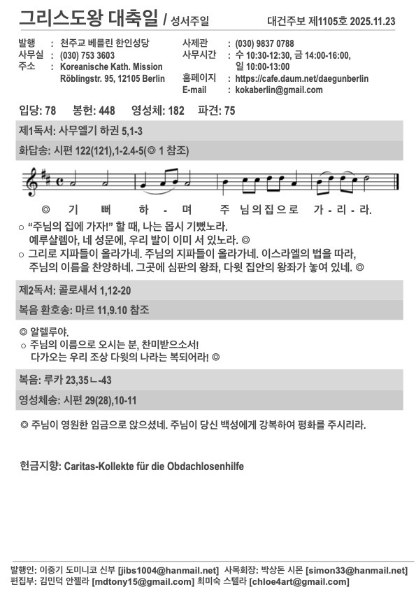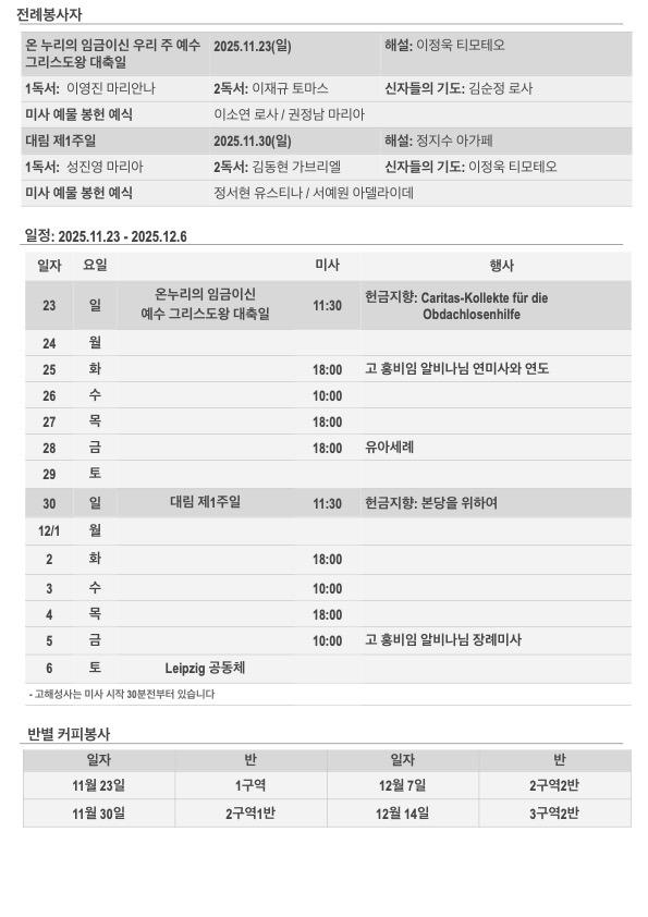 2025년 그리스도왕 대축일 주보입니다. 작성자김민덕 안젤라|작성시간25.11.23|조회수115 목록 댓글 0 글자크기 작게가 글자크기 크게가 20251123.pdf595.94KB 첨부파일첨부된 파일이 5개 있습니다. jpg 파일 202511232.jpg 다운로드 jpg 파일 202511231.jpg 다운로드 jpg 파일 202511234.jpg 다운로드 jpg 파일 202511233.jpg 다운로드 pdf 파일 20251123.pdf 다운로드 다음검색 현재 게시글 추가 기능 열기 북마크 공유하기 신고 센터로 신고 댓글 댓글 0 댓글쓰기 답글쓰기 댓글 리스트