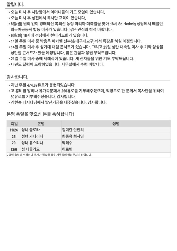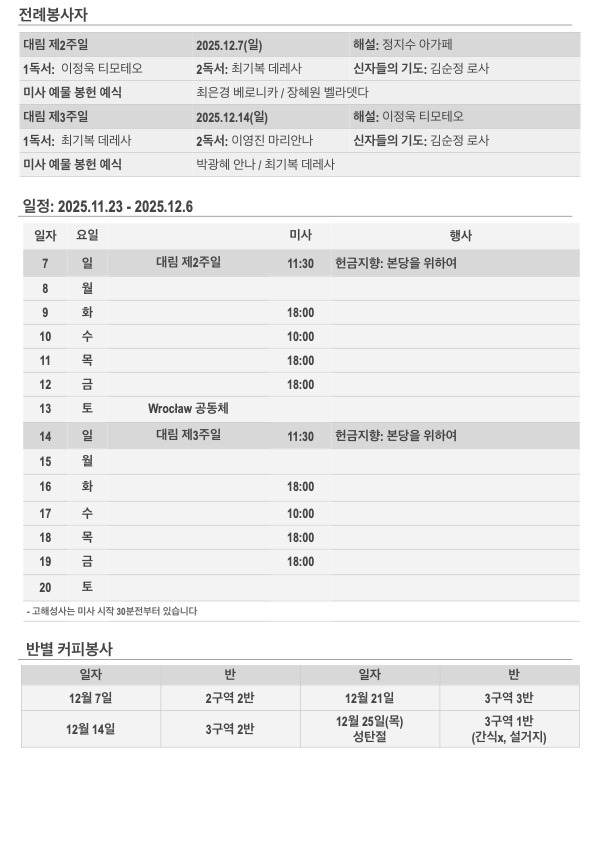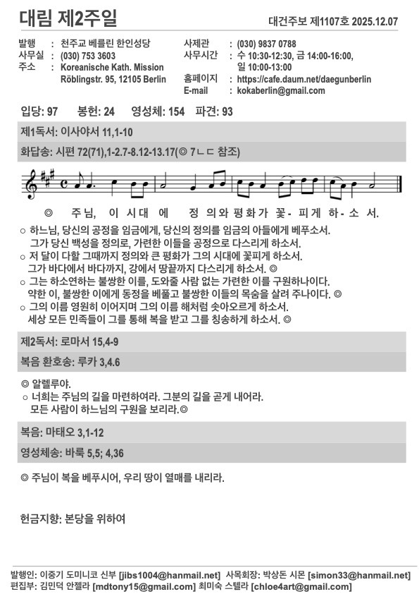 2025년 대림 제2주일 주보입니다. 작성자김민덕 안젤라|작성시간25.12.07|조회수101 목록 댓글 0 글자크기 작게가 글자크기 크게가 20251207.pdf573.37KB 첨부파일첨부된 파일이 5개 있습니다. jpg 파일 202512071.jpg 다운로드 jpg 파일 202512072.jpg 다운로드 jpg 파일 202512073.jpg 다운로드 jpg 파일 202512074.jpg 다운로드 pdf 파일 20251207.pdf 다운로드 다음검색 현재 게시글 추가 기능 열기 북마크 공유하기 신고 센터로 신고 댓글 댓글 0 댓글쓰기 답글쓰기 댓글 리스트
