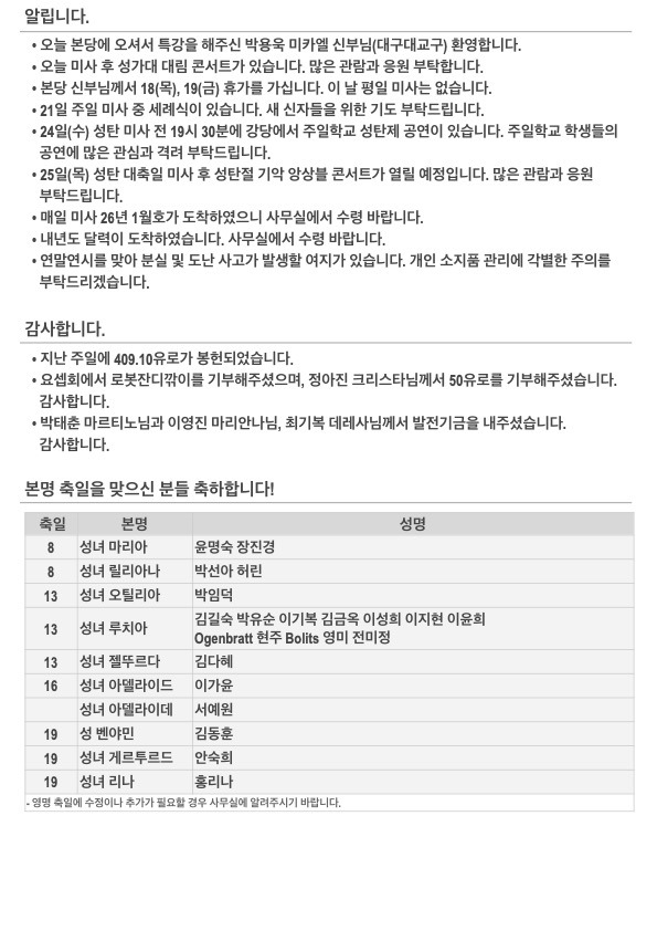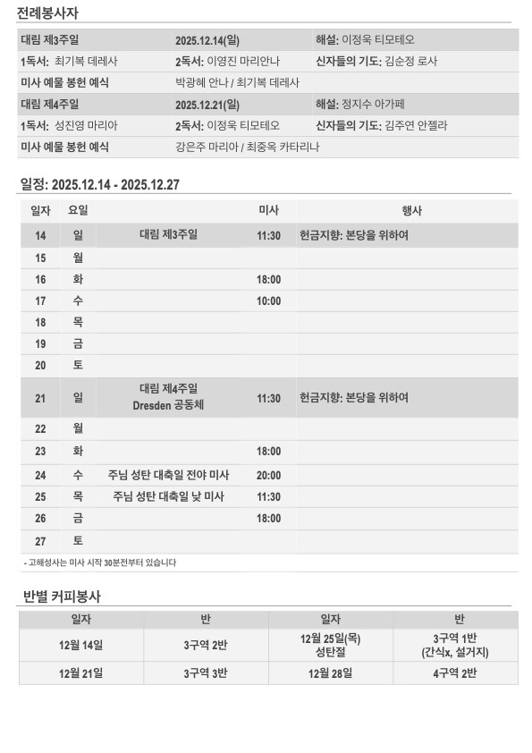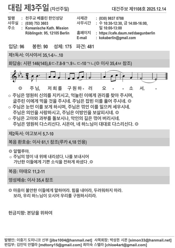 2025년 대림 제3주일 주보입니다. 작성자김민덕 안젤라|작성시간25.12.14|조회수122 목록 댓글 0 글자크기 작게가 글자크기 크게가 20251214.pdf571.30KB 첨부파일첨부된 파일이 5개 있습니다. jpg 파일 202512141.jpg 다운로드 jpg 파일 202512143.jpg 다운로드 jpg 파일 202512144.jpg 다운로드 jpg 파일 202512142.jpg 다운로드 pdf 파일 20251214.pdf 다운로드 다음검색 현재 게시글 추가 기능 열기 북마크 공유하기 신고 센터로 신고 댓글 댓글 0 댓글쓰기 답글쓰기 댓글 리스트