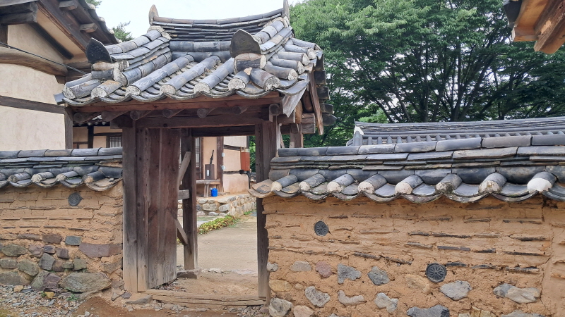 강당 주위 담장은 흙과 기와로 쌓은 맞담으로 형태와 구성이 매우 아름답다.