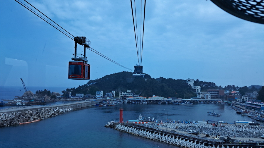 케이블카 아래 장호항의 풍경