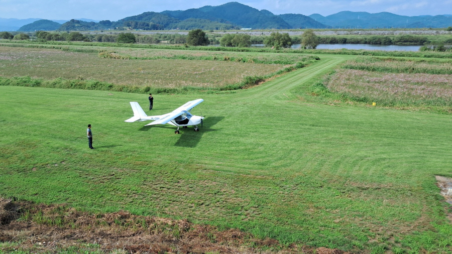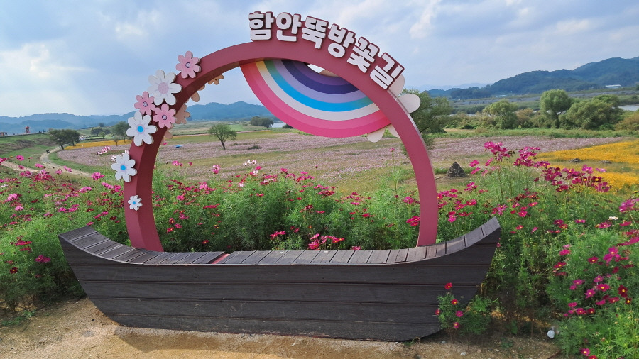 둑방 아래 둔치에 있는 '함안경비행장' 계절꽃단지는 여기서 부터