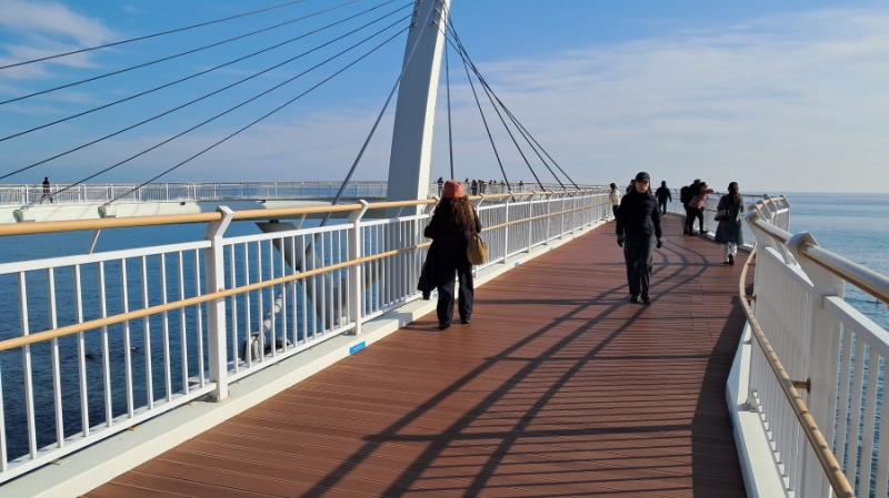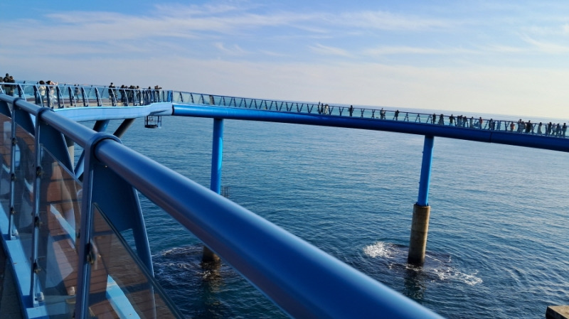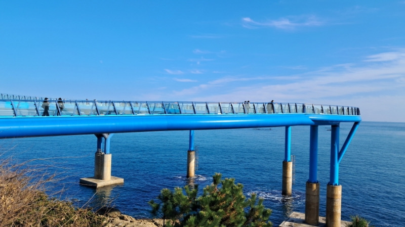 전망대 끝자락에는 반달 모양의 투명바닥을 설치해 바다 위를 걷는 아슬아슬함을