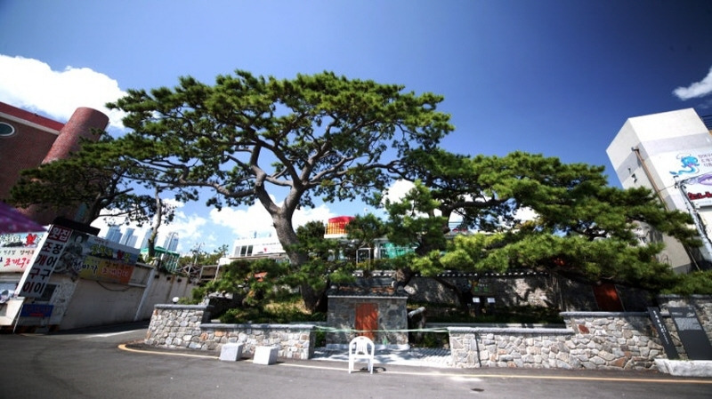 청사포 당산(堂山) 앞에 있는 망부송(望夫松), 바다에 나간 지아비를 지어미가