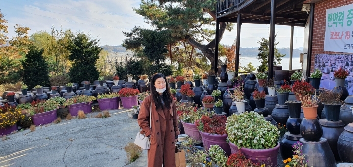 식당 무지크고 꽃화분을 엄청 키우네.