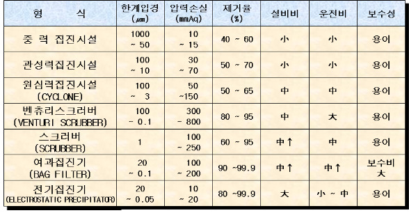 3)집진장치 선정 목표설정: 배출량, 배출허용기준 등을 고려 처리효율 결정 검토