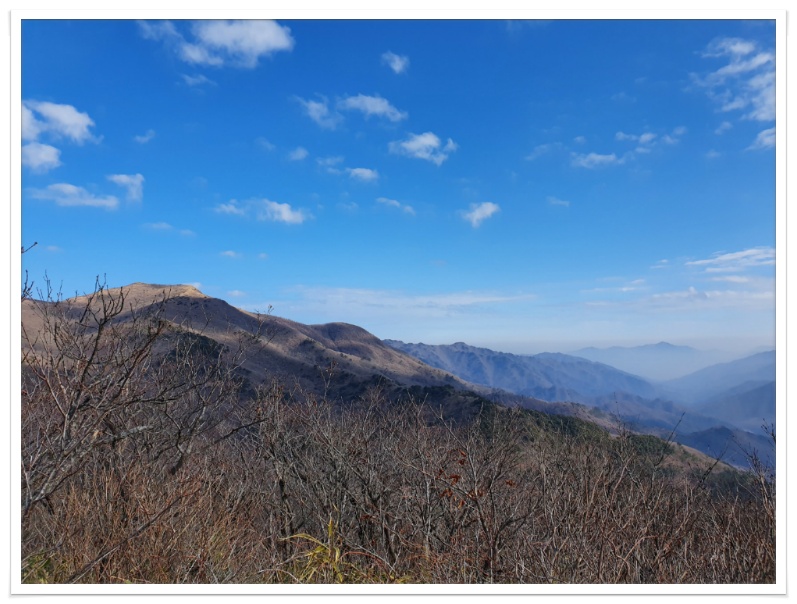 중앙 멀리 지리서부능선의 바래봉과 우측 임천지맥의 삼봉산.