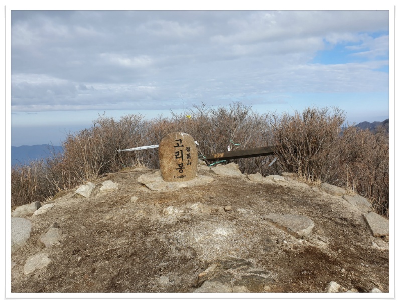 정상석이 있는 고리봉1248m이다. 엄밀하게 말하면 ‘작은 고리봉’이다. 멀리서 보면 이 고리봉은 만복대와 노고단 혹은 반야봉에 눌려 좀 왜소하게 보이긴 한다. 그래서 사람들은 아까 본 백두대간이 갈리는 2등급 삼각점이 있었던 1305.4m의 고리봉과 구분하여 이 봉우리를 작은고리봉이라고도 부른다. 합당할까?