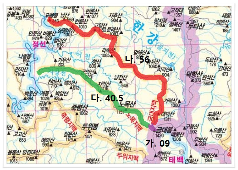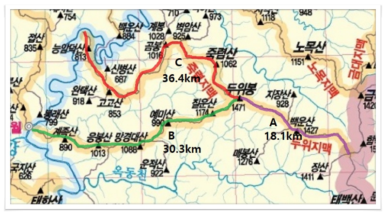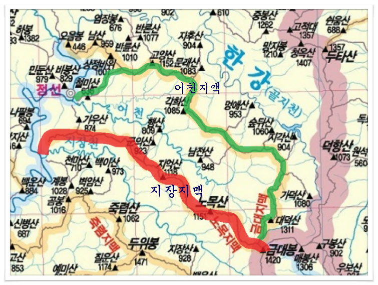 하지만 정맥 만큼은 예전 원산경표인 9정맥에서 쉽게 벗어나질 못하고 있습니다.