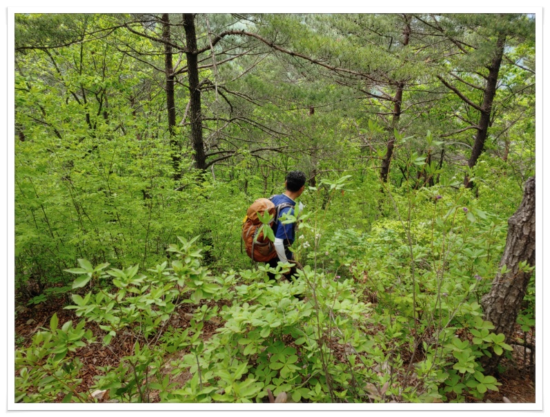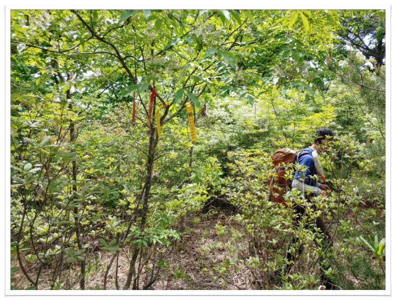 내려가는 길은 완전히 잡목이 막혀 있어 상당히 어렵게 진행을 합니다.