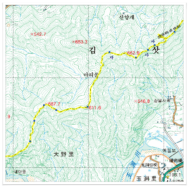 이제부터는 온전하게 김삿갓면 안에서 옥동지맥을 진행합니다.