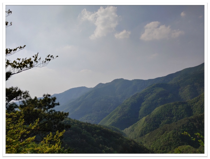 저 뒷봉우리가 맞대산에서 수리봉으로 이어지는 줄기인데 그렇다면 조금만 더 가면 그 우측으로 태화산으로 이어지는 줄기가 볼만할 것 같습니다.