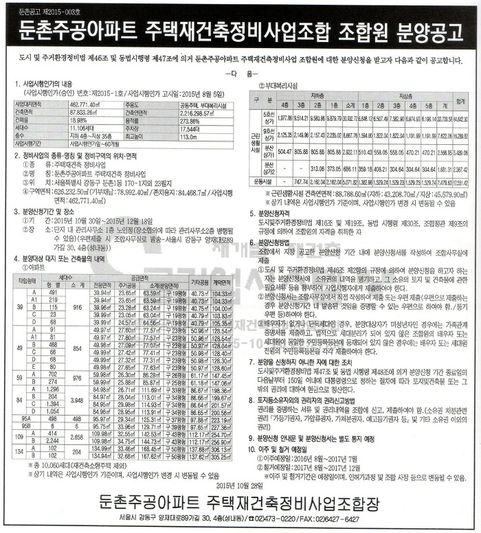 - 둔촌주공아파트 조합원 분양공고 안내 연락처 : 02-489-6761~5