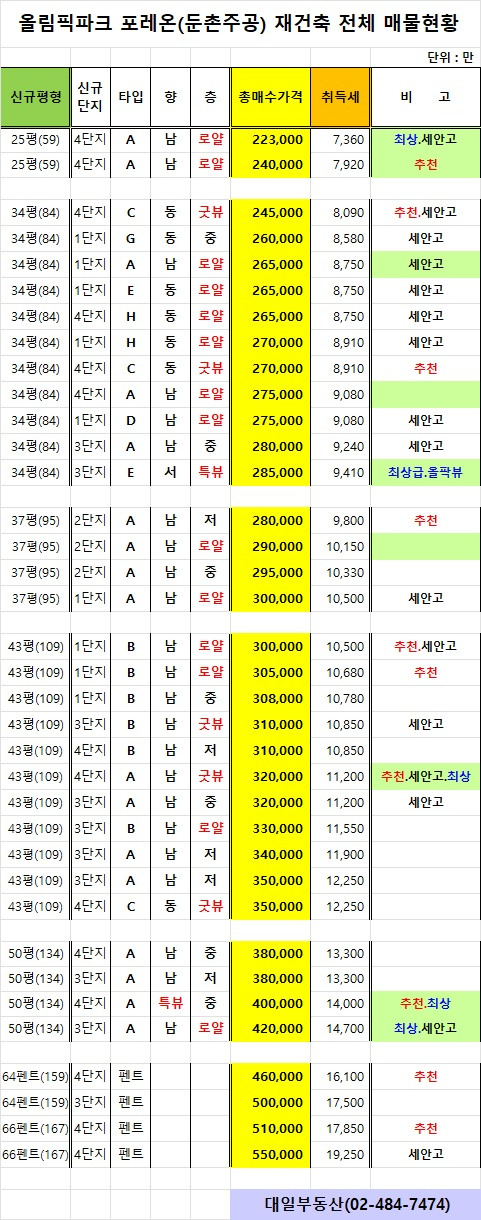 아래 링크주소는 올림픽파크포레온 5월 실시간 매물입니다.
