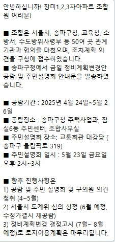 잠실미성재건축은 정비계획변경안 공람 및 주민설명회가 시작되었습니다.