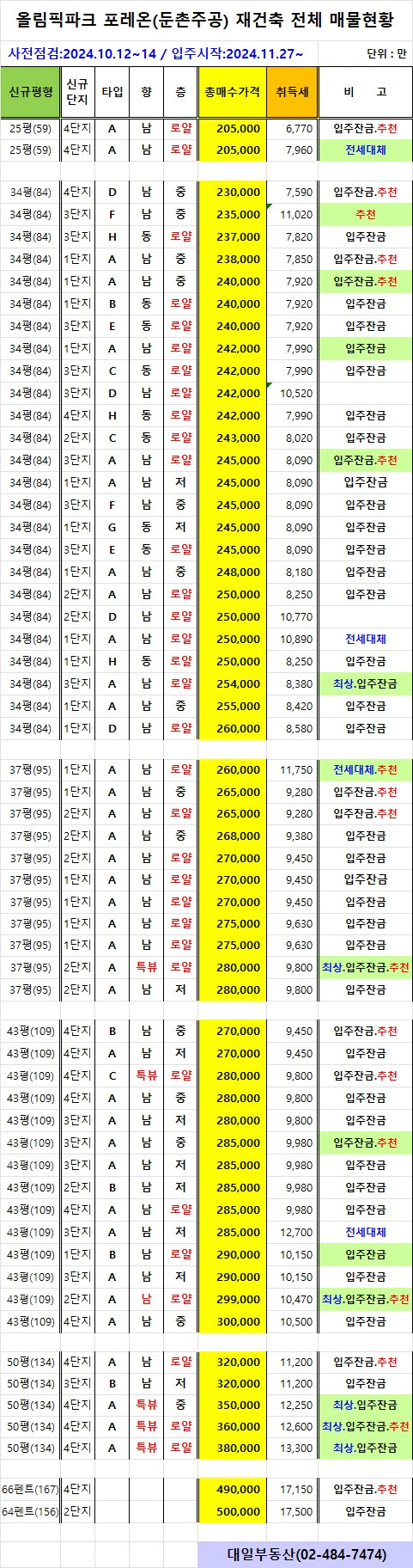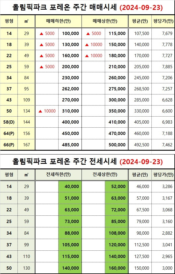 올림픽파크 포레온 실시간 매물현황 (2024-09-30)