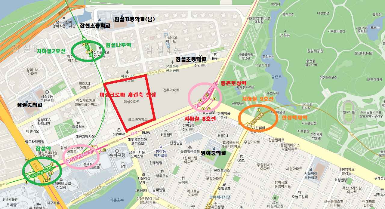 잠실의 주요 대표단지인 잠실 미성크로바 재건축과 잠실 진주아파트 재건축이 있습니다.