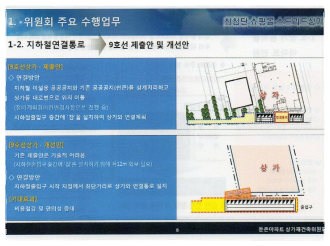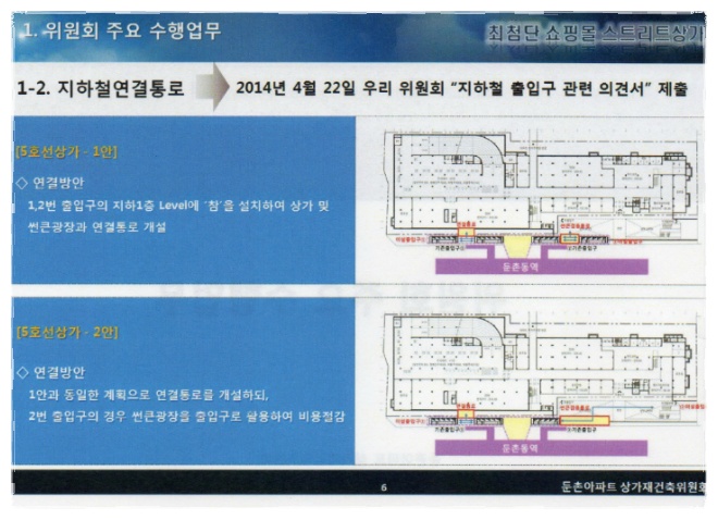 여타 재건축지역의 상가보다는 지하철역과 썬큰광장의 형태로 직결연결 되기 때문에... 활성화 측면에서는 상당히 괜찮을듯 싶다. 그리고, 5호선상가 지하층 같은 경우 푸드코트가 잘 활용되고, 문화센터와 연계성을 잘갖춰진다면... 좋을것이다.