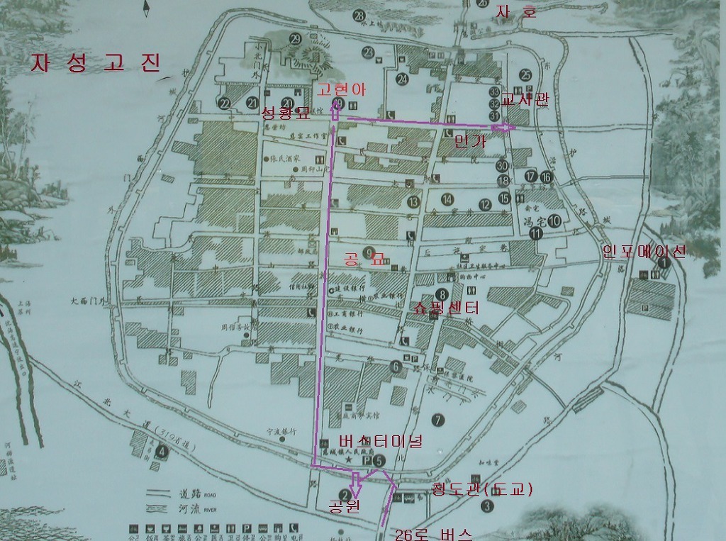 내려서 26路 버스 를 바꾸어 타고 慈城(자성) 에 내리는데 호텔에서 부터 치자면