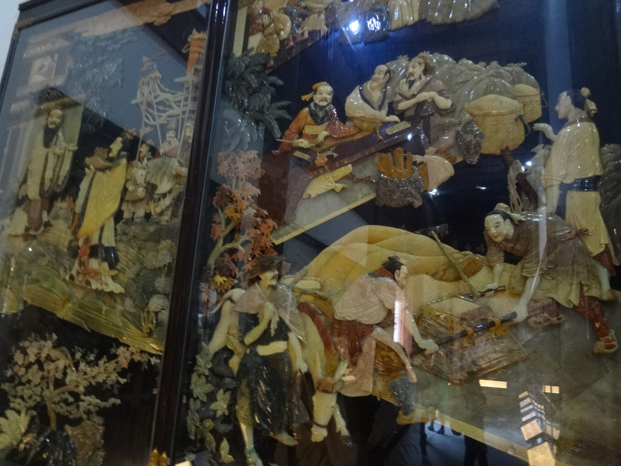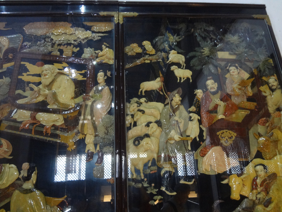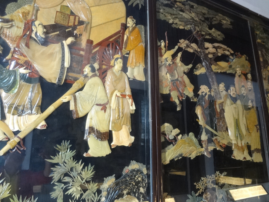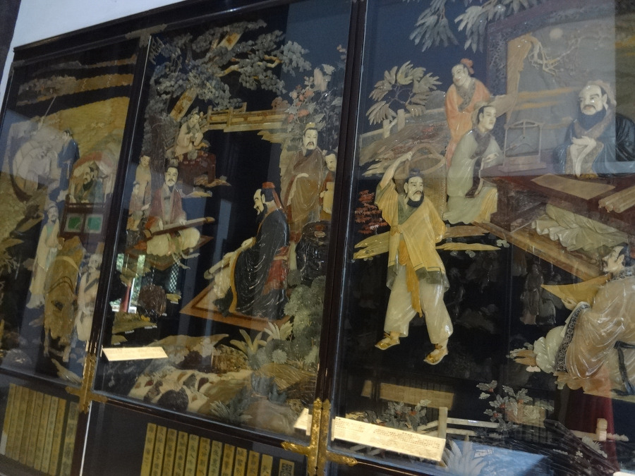 벽에는 공자의 일대기 를 자개 같은걸로 표현한 그림이 보이는데 세상을 주유 하며 뜻을