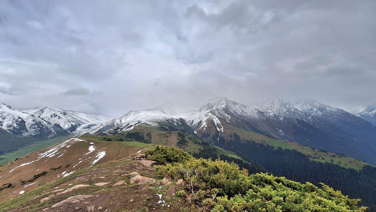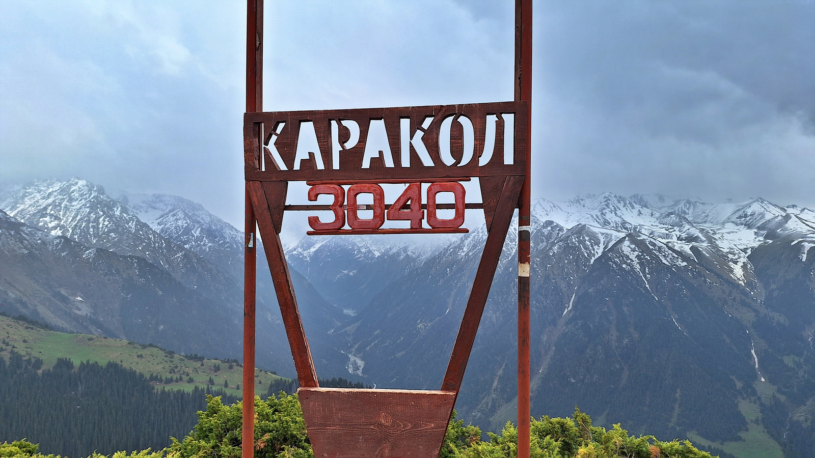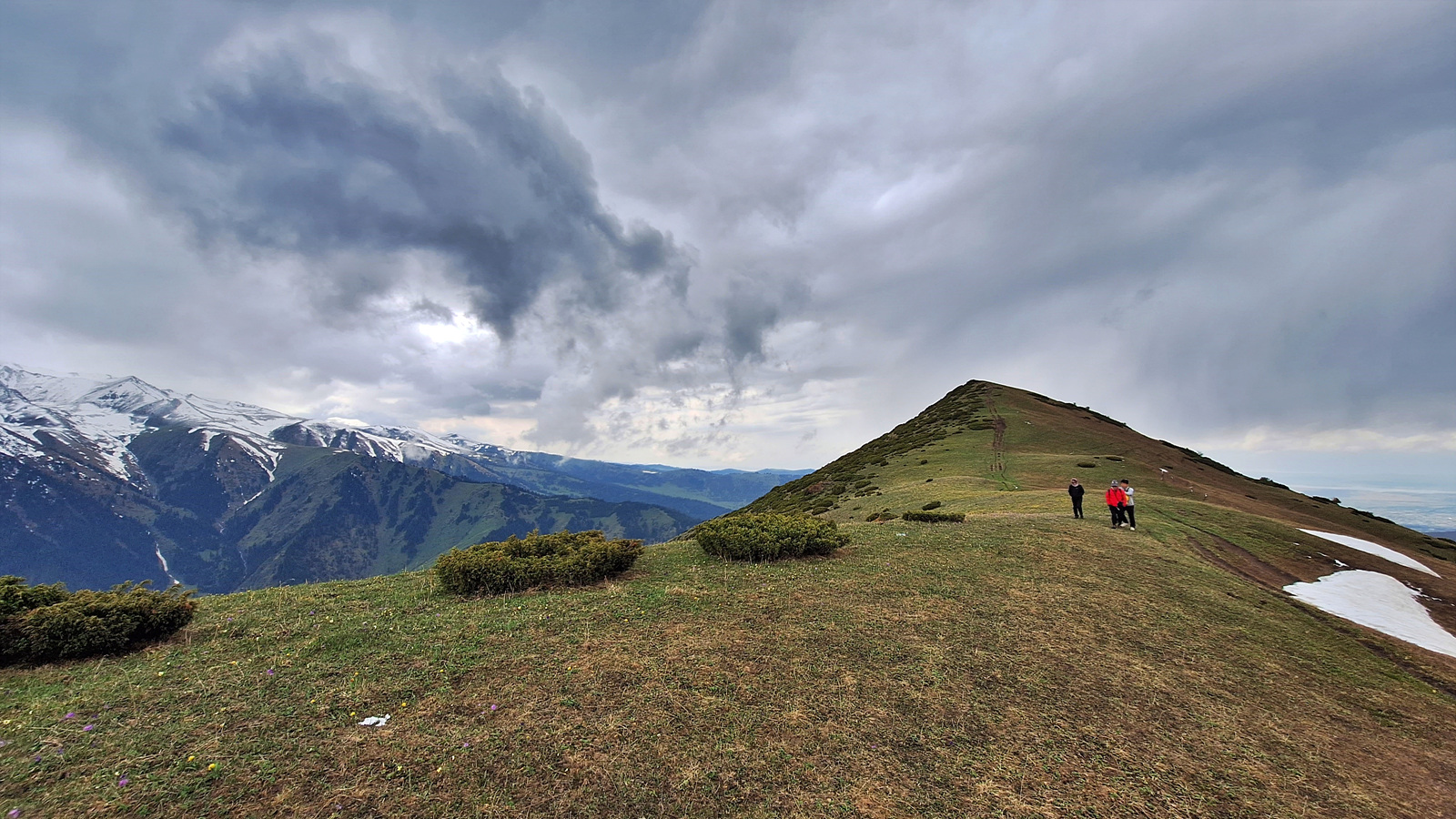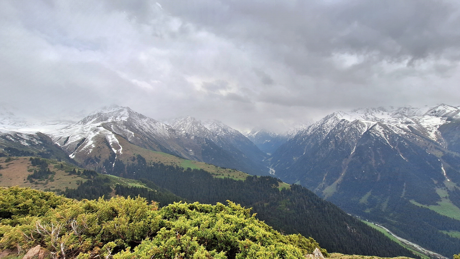저 멀리 키르기스스탄의 최대 호수인 이식쿨 호수의 동쪽 끝면이 살짝 보인다.