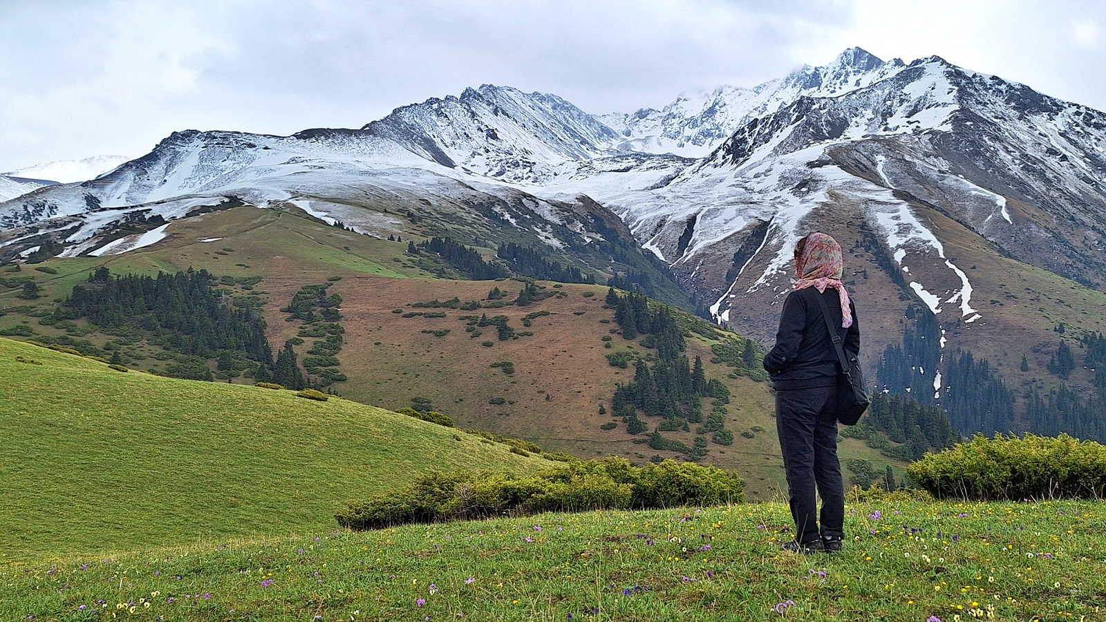 리프트 정상에 오르니 장쾌한 천산산맥의 풍광이 펼쳐진다.