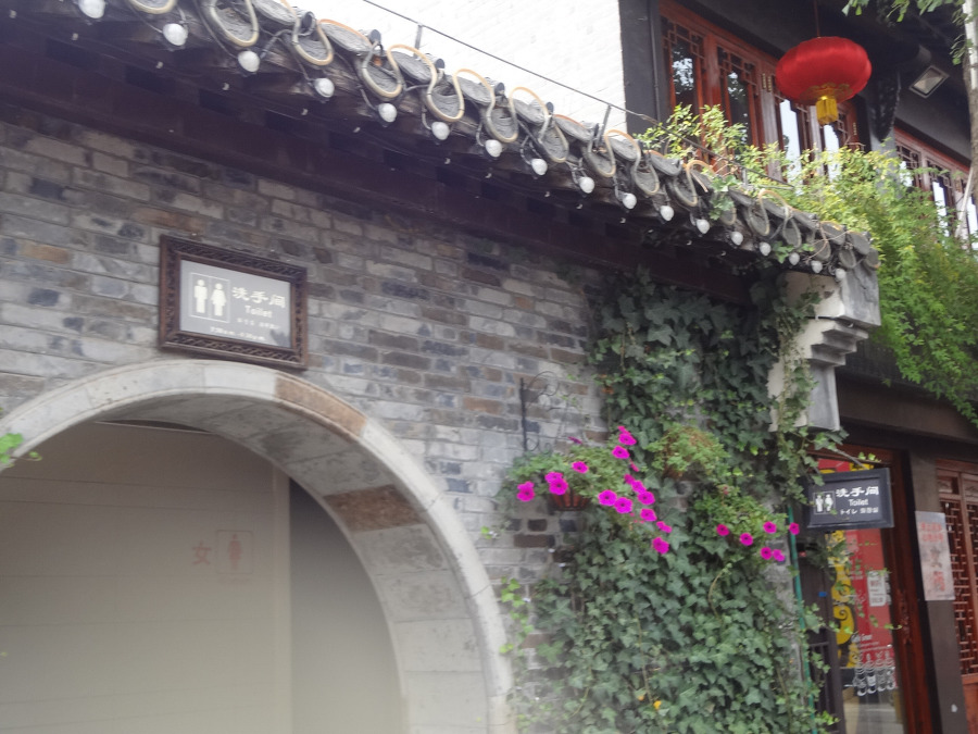 거위안 정원 을 나오니 주변 골목은 나무와 꽃 으로 둘러쌓인 기와집들인데....