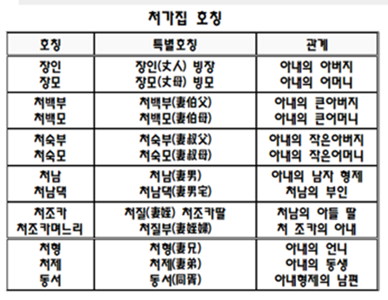 ㆍ아내의 작은 아버지는 처숙부, 처삼촌, 작은 어머미는 처숙모라고 한다