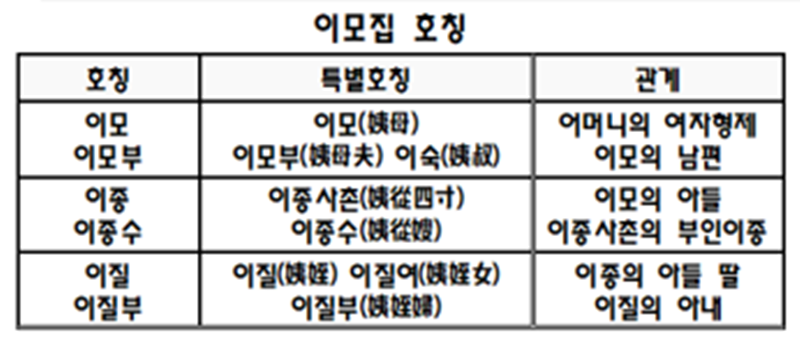 ㆍ이모(姨母), 이모부(姨母夫)는