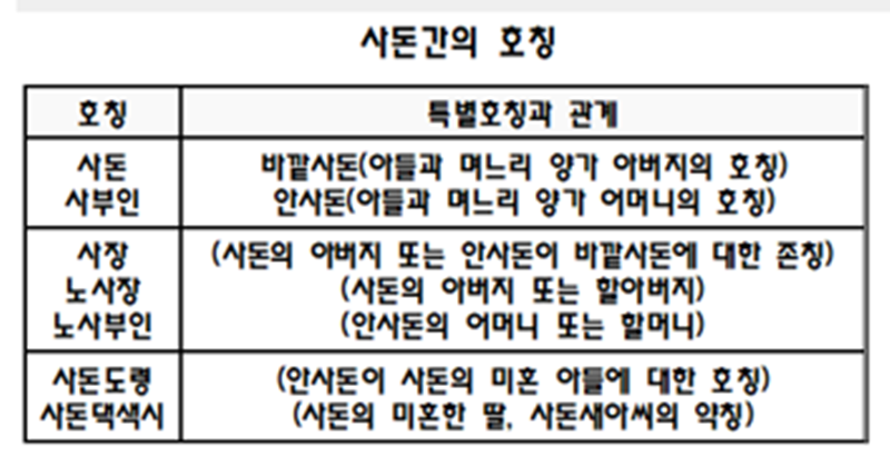 ㆍ존이모(尊姨母) - 아까 고모에서 말했듯이 할머니와 친정누이를 말한다.
