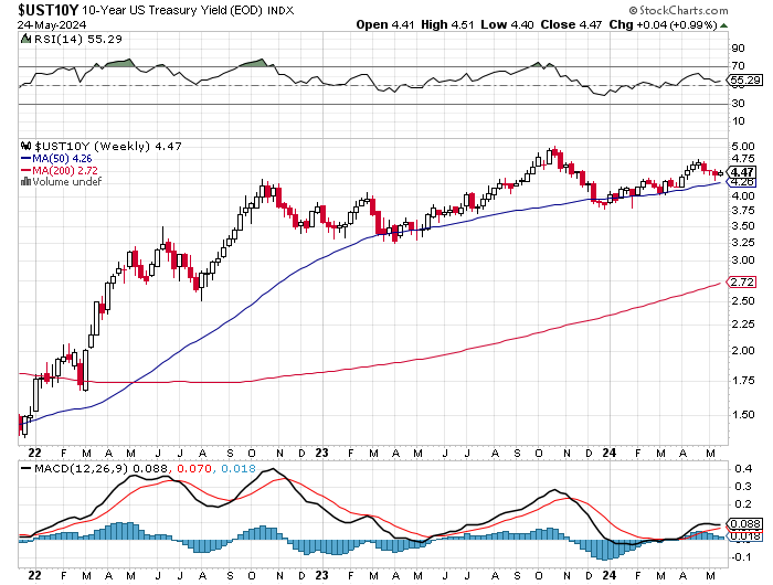 의회예산처는 적자 급증으로 인해 GDP 대비 국민 부채가 "미국 역사상 어느 시점보다 더 큰 금액"으로 증가할 것으로 추정하고 있다. 2023년 봄, 5개의 은행이 도산하고 연준이 개입하여 백스톱 프로그램으로 사태를 멈출 때까지 세계적 은행가들은 다음 위기가 시장에서 촉발될 것이라고 주장한다(채권 수익률 상승이 주식으로 쏟아져 들어간다). 제이미 다이먼은 지난 주 스카이 뉴스에서 다시 부채와 적자를 소리냈다.