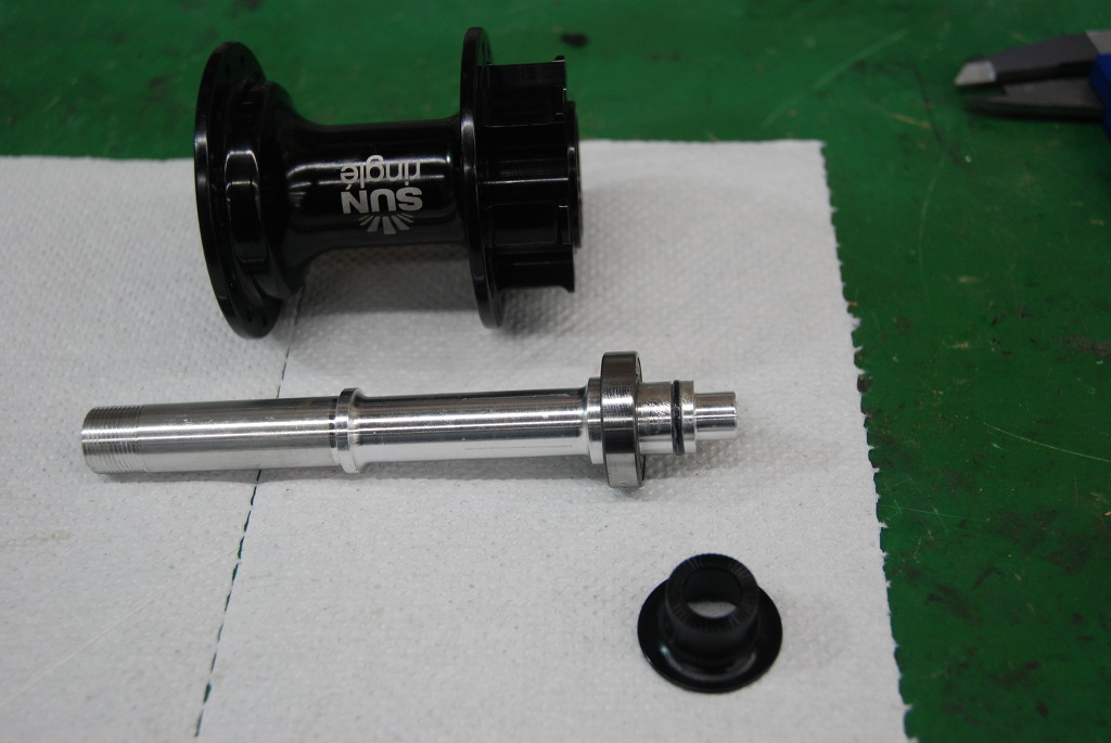 실드베어링을 빼고 엑슬축을 반대로 다시 허브에 삽입한다.