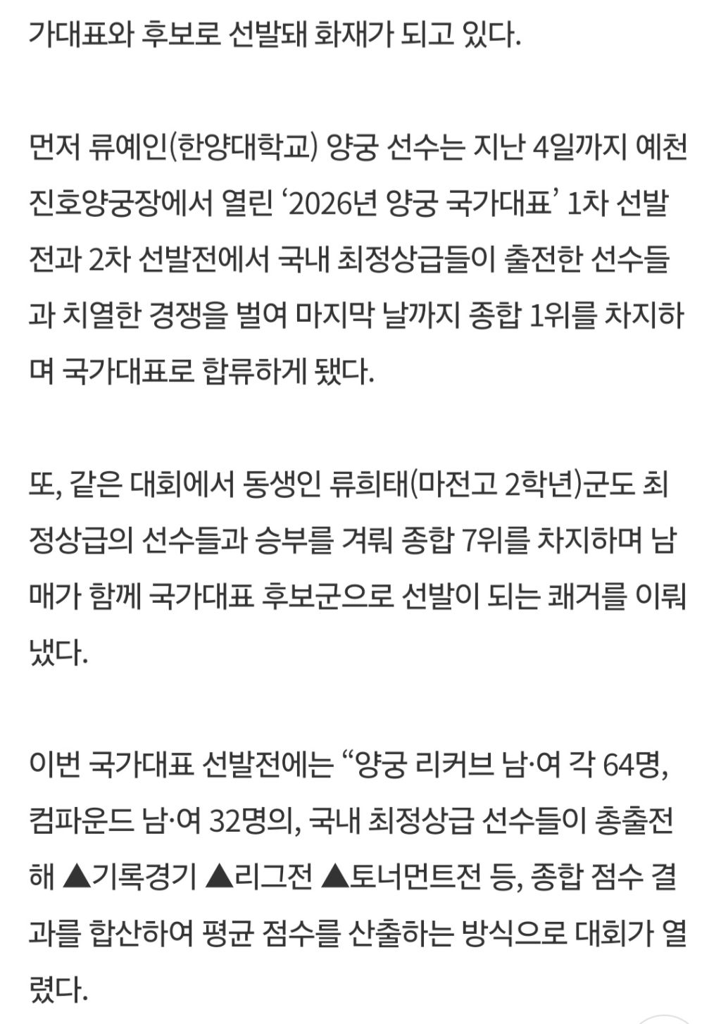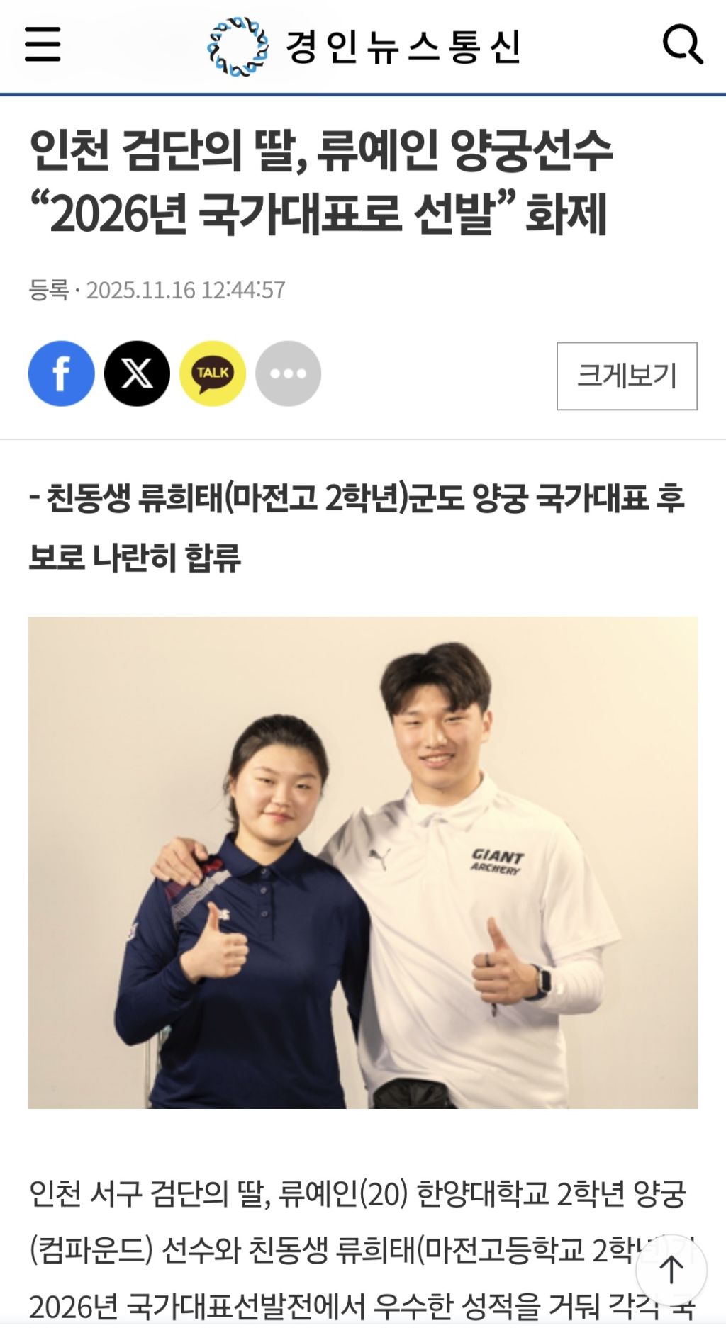 3회 류우근 고문님 손녀,손자 양궁 국가대표 발탁 작성자고상혁(23회) 신당리|작성시간25.11.17|조회수128 목록 댓글 0 글자크기 작게가 글자크기 크게가 3회 류우근 고문님 손녀.손자30회 류창남 장녀.차남 2026년 대한민국 양궁 국가대표 선발되었습니다. 다음검색 현재 게시글 추가 기능 열기 북마크 신고 센터로 신고 댓글 댓글 0 댓글쓰기 답글쓰기 댓글 리스트