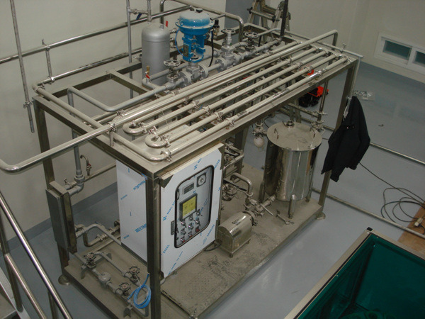 원료의 양에 맞춰 적정량의 정제수를 투입합니다. ( 유량제어 장치에 의해 자동으로 조절 가능함.)