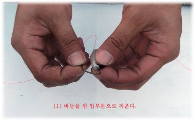 (3) 바늘과 쇼크리더에 바늘 묶는 방법